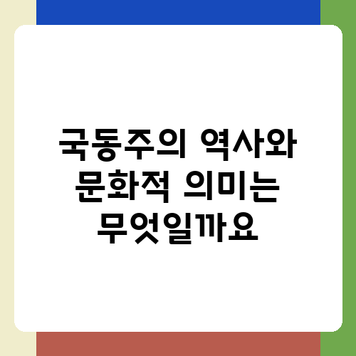 국동주는 익숙한 술이지만, 사실 제대로 알고 마시는 사람은 많지 않다고 생각해요. 오늘은 국동주에 대한 궁금증을 해소하고, 더욱 즐겁게 즐길 수 있도록 자세히 알아보는 시간을 갖도록 하겠습니다. 국동주는 어떤 술이고, 어떻게 만들어지며, 어떤 맛과 향을 지니고 있는지, 그리고 어떤 음식과 잘 어울리는지 함께 살펴보아요.