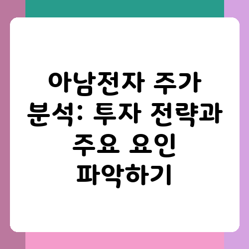 아남전자, 이름만 들어도 익숙한 기업이죠. 예전부터 많은 분들이 알고 계신 오랜 역사를 가진 회사인데, 최근 주가 흐름에 대해 궁금해하시는 분들이 많더라고요. 주식 투자는 어려운 일이지만, 제대로 알고 투자하면 좋은 결과를 얻을 수도 있답니다. 이 글에서는 아남전자 주가에 대한 궁금증을 해소하고, 투자 결정에 도움을 드리고자 자세히 알아보도록 하겠습니다. 여러분의 투자 성공을 응원합니다!