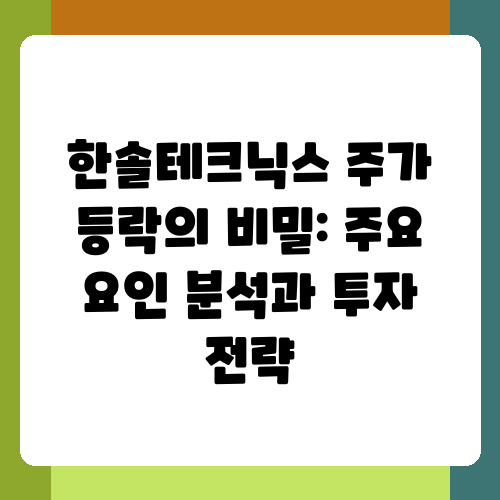 한솔테크닉스, 요즘 주식 투자에 관심 있는 분들이라면 한번쯤 들어보셨을 회사죠. 저도 최근 한솔테크닉스 주가 움직임을 보면서 여러 정보를 찾아보고 분석해 보았는데요, 여러분께 도움이 될 만한 내용을 정리해 보았습니다. 앞으로 한솔테크닉스 주가에 대해 자세히 알아보고, 투자 전략까지 함께 생각해 보는 시간을 갖도록 하겠습니다.